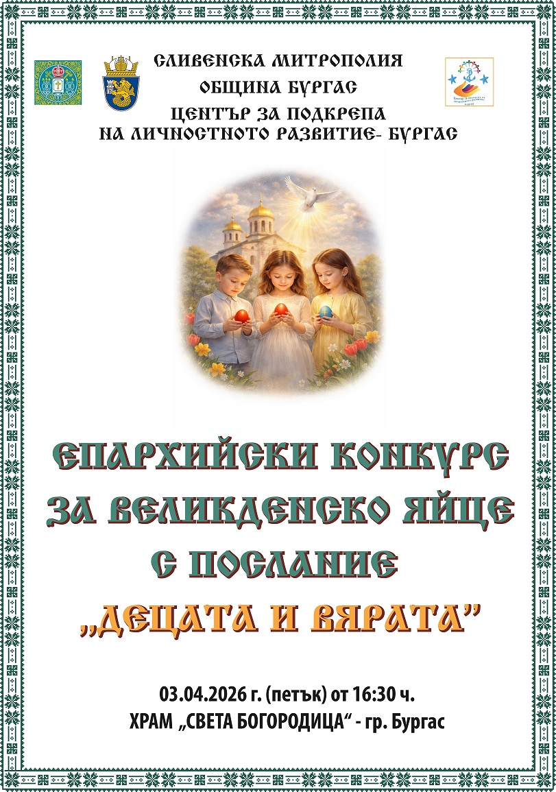 ЕПАРХИЙСКИ КОНКУРС ЗА ВЕЛИКДЕНСКО ЯЙЦЕ С ПОСЛАНИЕ НА ТЕМА „ДЕЦАТА И ВЯРАТА” - 2026