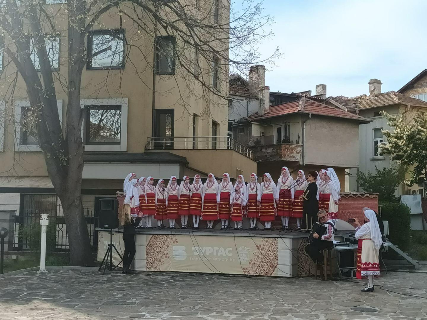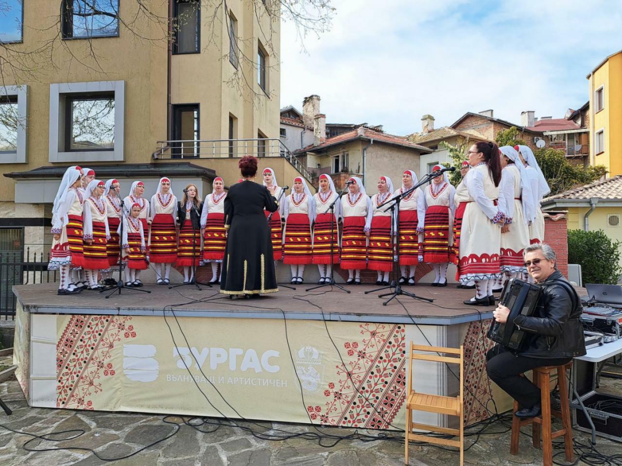 Дворът на „Етно музей и кафене“ – Бургас се превърна в празнична сцена за богатството на българските традиции. Събитието събра на едно място утвърденото майсторство на Народен хор „Трепетлика“ при ЦПЛР – Бургас и енергията на младите таланти от Танцов състав „Младост“ към ОУ „Елин Пелин“ – Бургас.