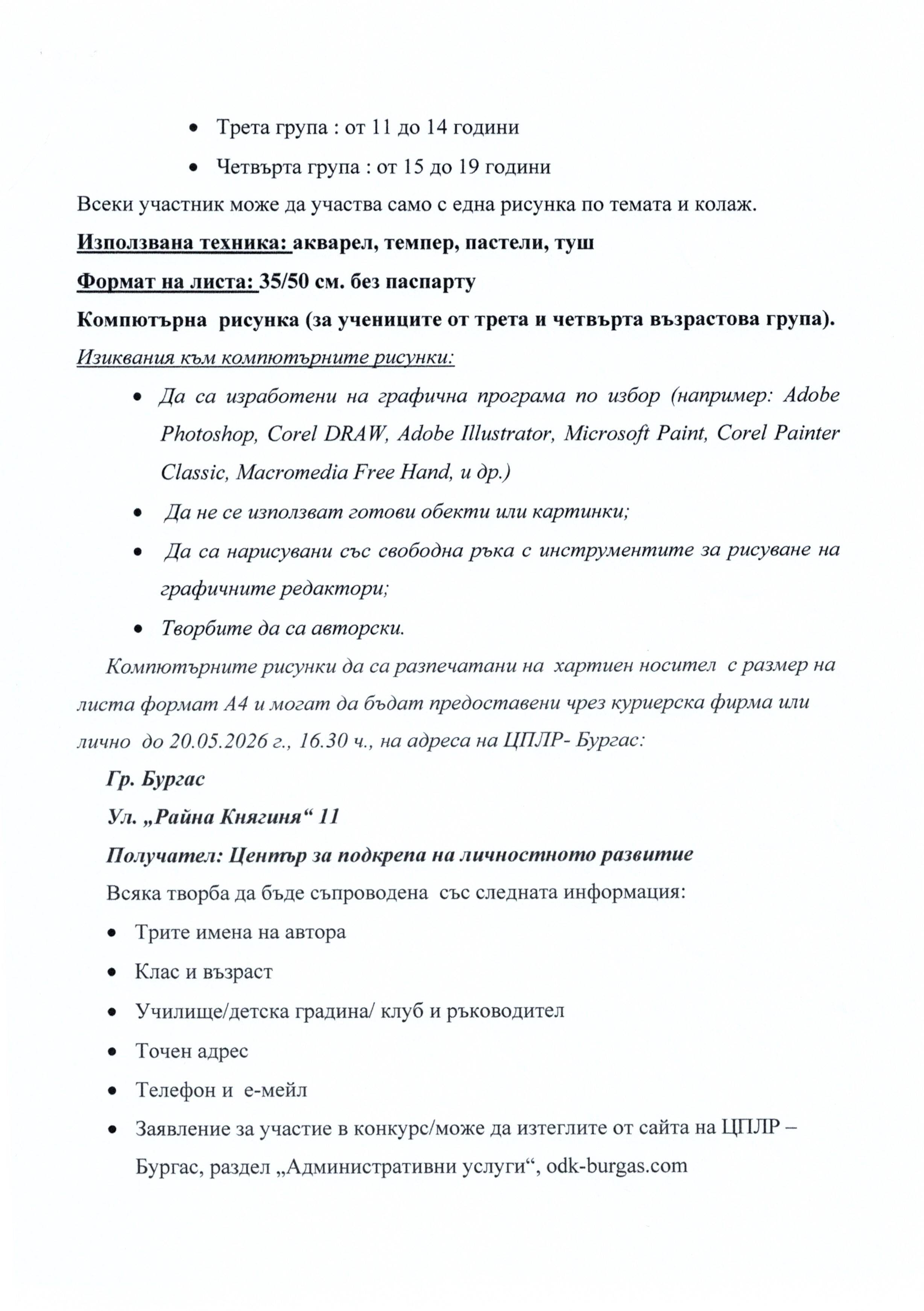 Заявление за участие в конкурса, както и регламента може да изтеглите както като прикачени файлове към новината, така и на следния линк: https://www.odk-burgas.com/bg/content/konkurs-za-risunka-az-moyat-grad-i-moreto-2026-g