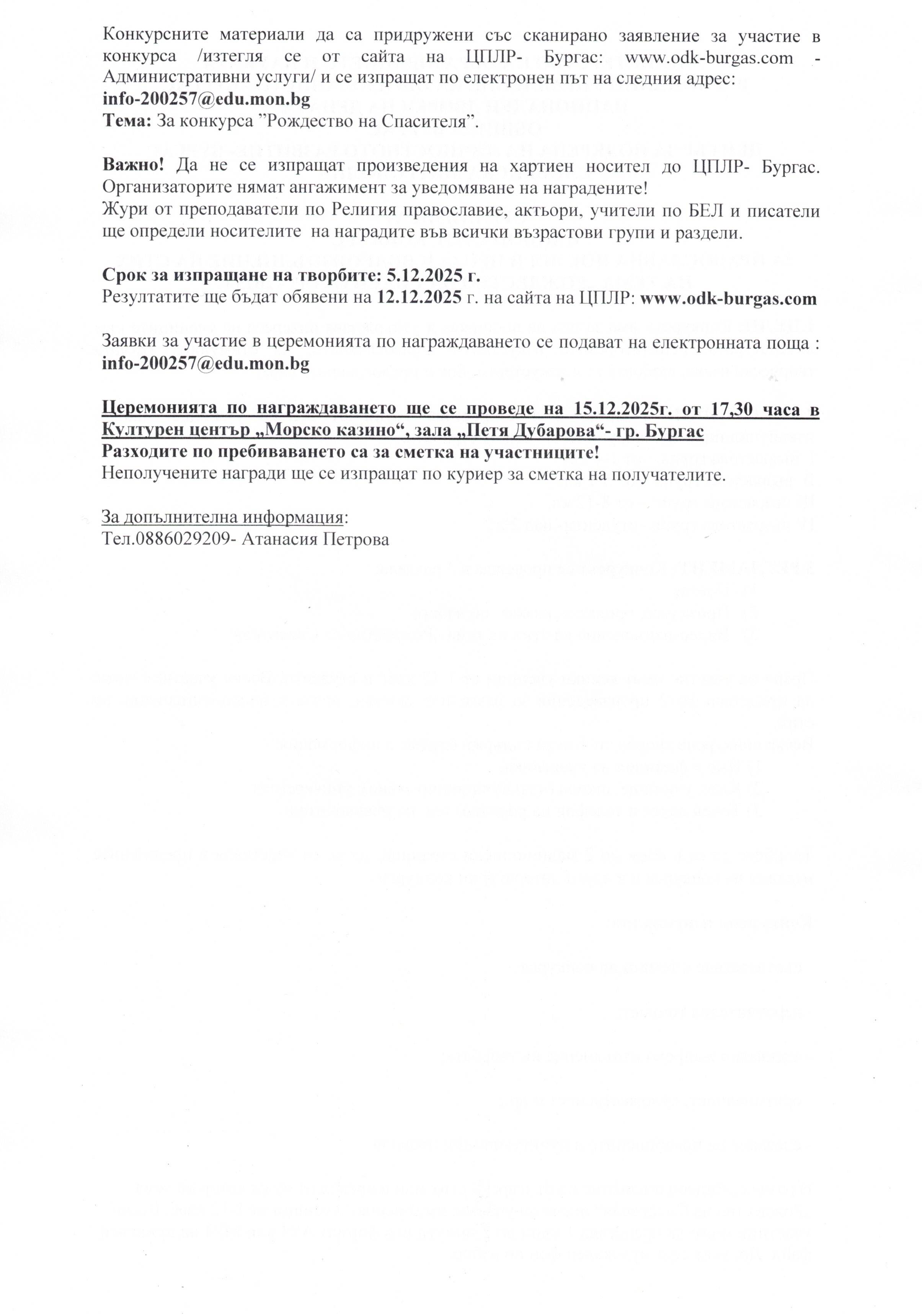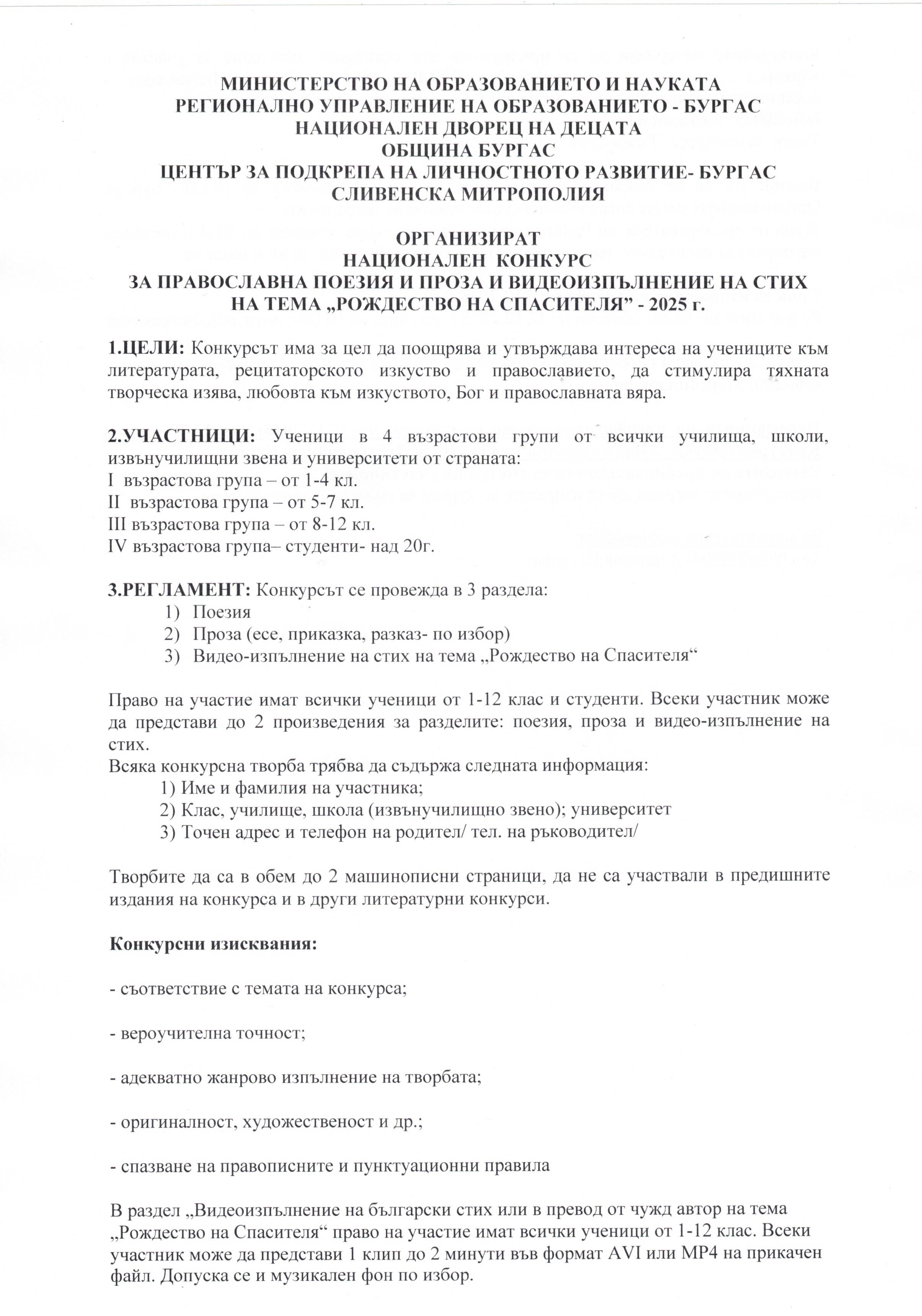 НАЦИОНАЛЕН КОНКУРС ЗА ПРАВОСЛАВНА ПОЕЗИЯ И ПРОЗА И ВИДЕОИЗПЪЛНЕНИЕ НА СТИХ НА ТЕМА "РОЖДЕСТВОТО НА СПАСИТЕЛЯ" - 2025 г.