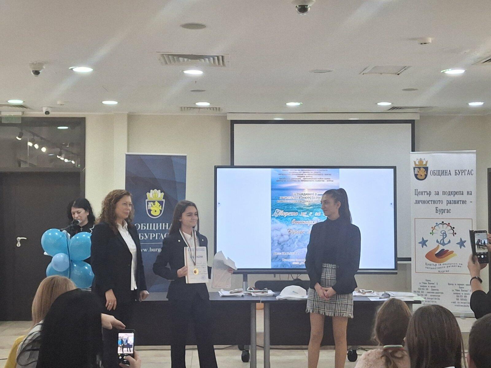 В раздел "фотография" Георги Георгиев от 7 клас на ОУ "Пейо Яворов" получи 1 място, а Даян Илиев от 9 клас в ПГЧЕ "Васил Левски"-Бургас бе награден също с 1 място.