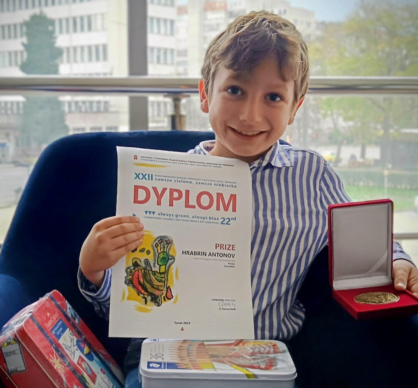 Отличието на малкия художник Храбрин Антонов е ярко доказателство за неговия талант, усърдие и силна художествена интуиция – както и за високото ниво на подготовка в ЦПЛР – Бургас.