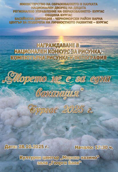 НАЦИОНАЛЕН КОНКУРС ЗА РИСУНКА, КОМПЮТЪРНА РИСУНКА И ФОТОГРАФИЯ „МОРЕТО НЕ Е ЗА ЕДНА ВАКАНЦИЯ”- 2025 г.