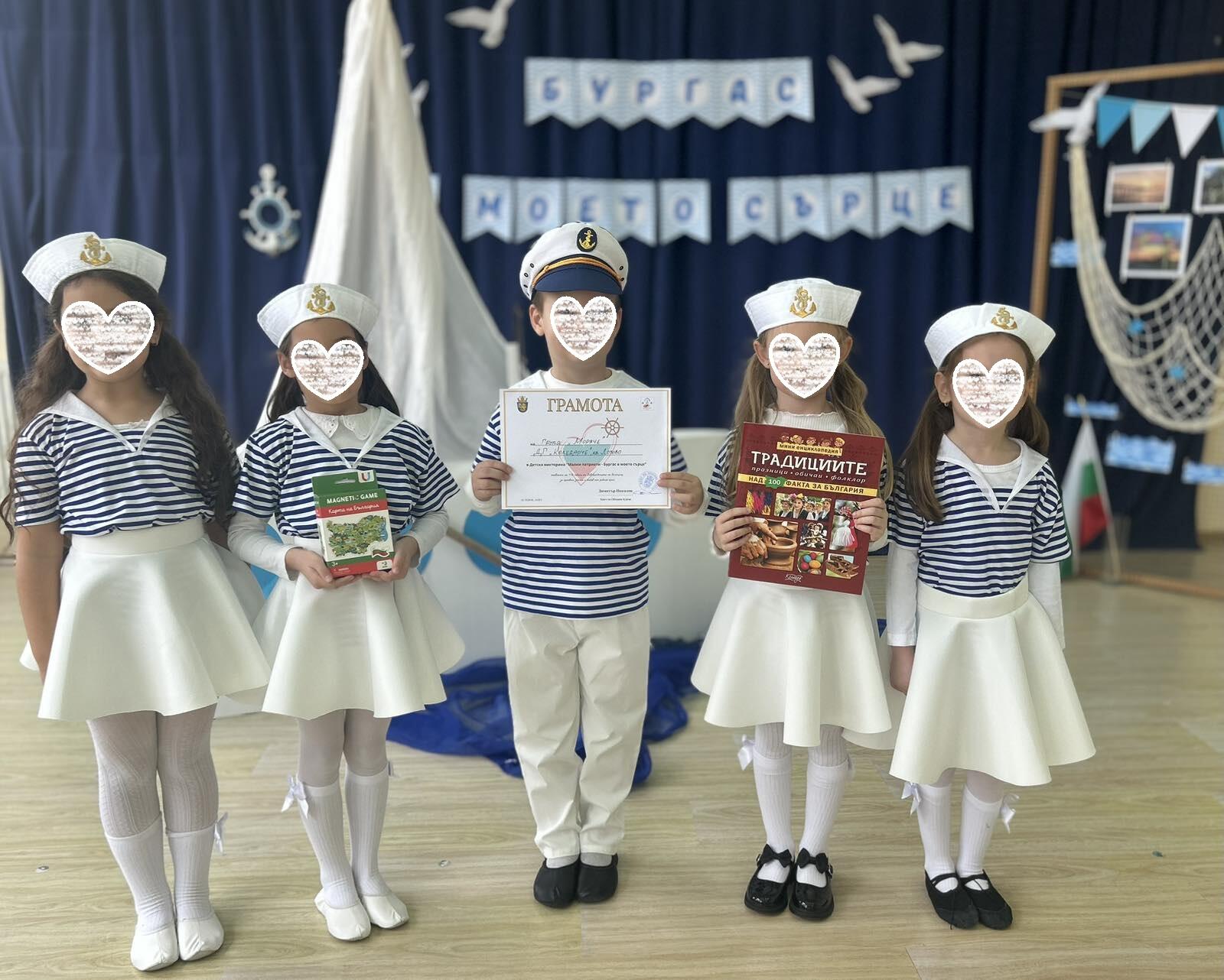 Днес децата от подготвителна група „Моряче“ към филиал Лозово на Детска градина „Коледарче“ взеха участие в детската викторина „Малки патриоти – Бургас в моето сърце“, организирана от Община Бургас и Центъра за подкрепа на личностното развитие – Бургас, посветена на 148 години от Освобождението на България.