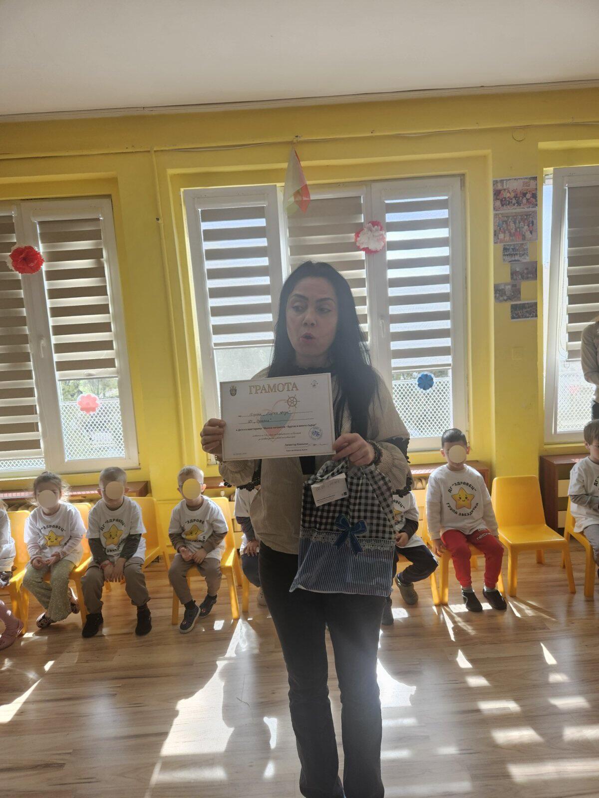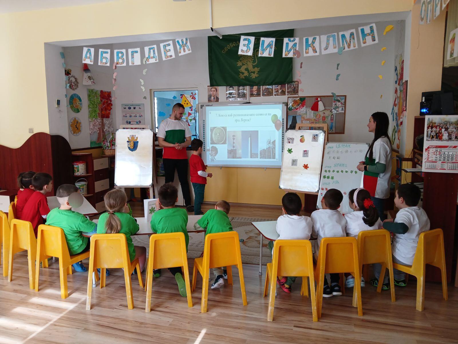 Вчера в ДГ "Здравец" в четвърта група "Морска звезда" се проведе викторина "Малки патриоти - Бургас в моето сърце".